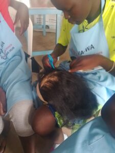 Today at WA-WA Kenya, our hairdressing cohort continues its journey toward professional excellence. Trainees are dedicating their practice sessions to braiding techniques, working diligently on mannequin heads to perfect their craft before transitioning to live models.